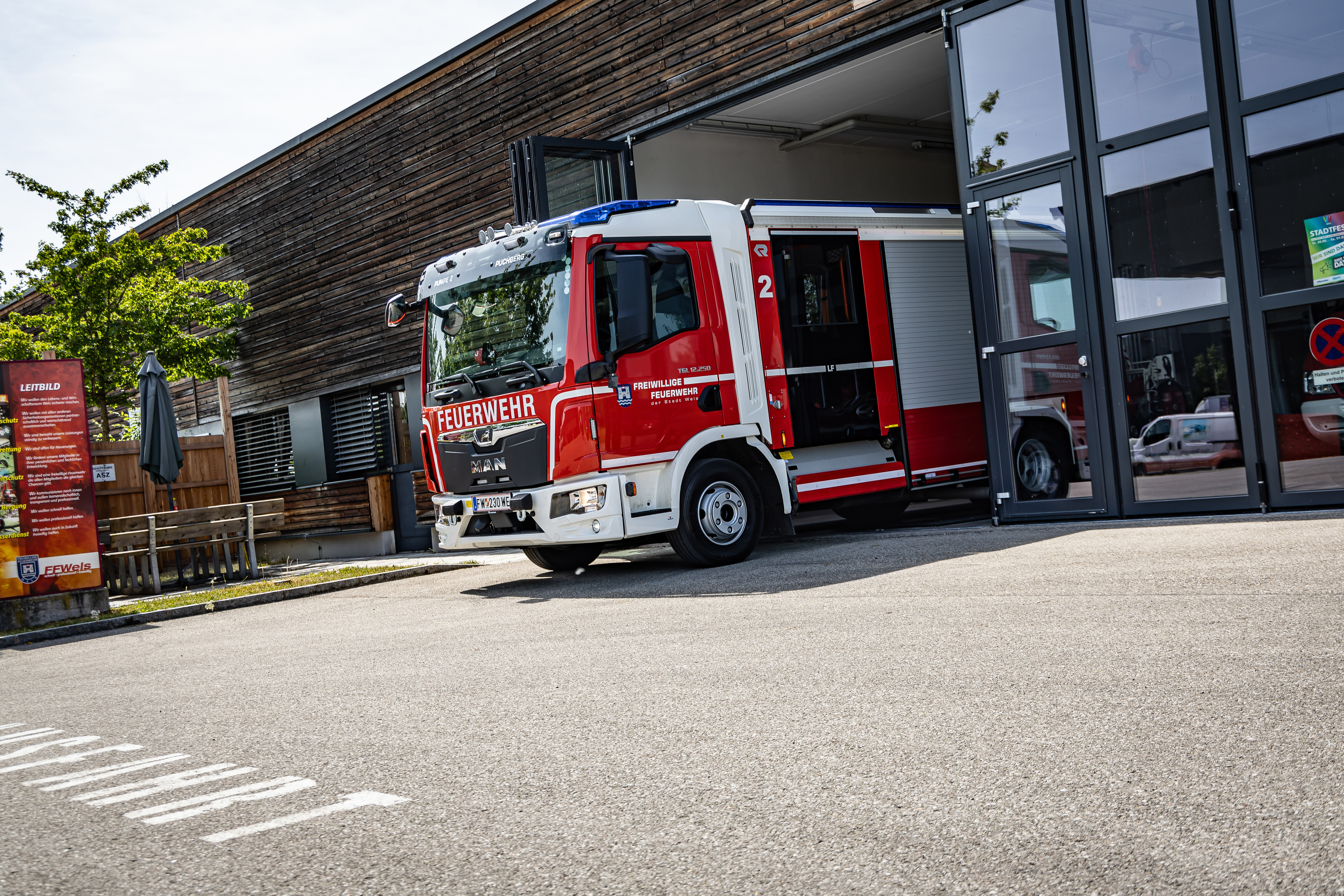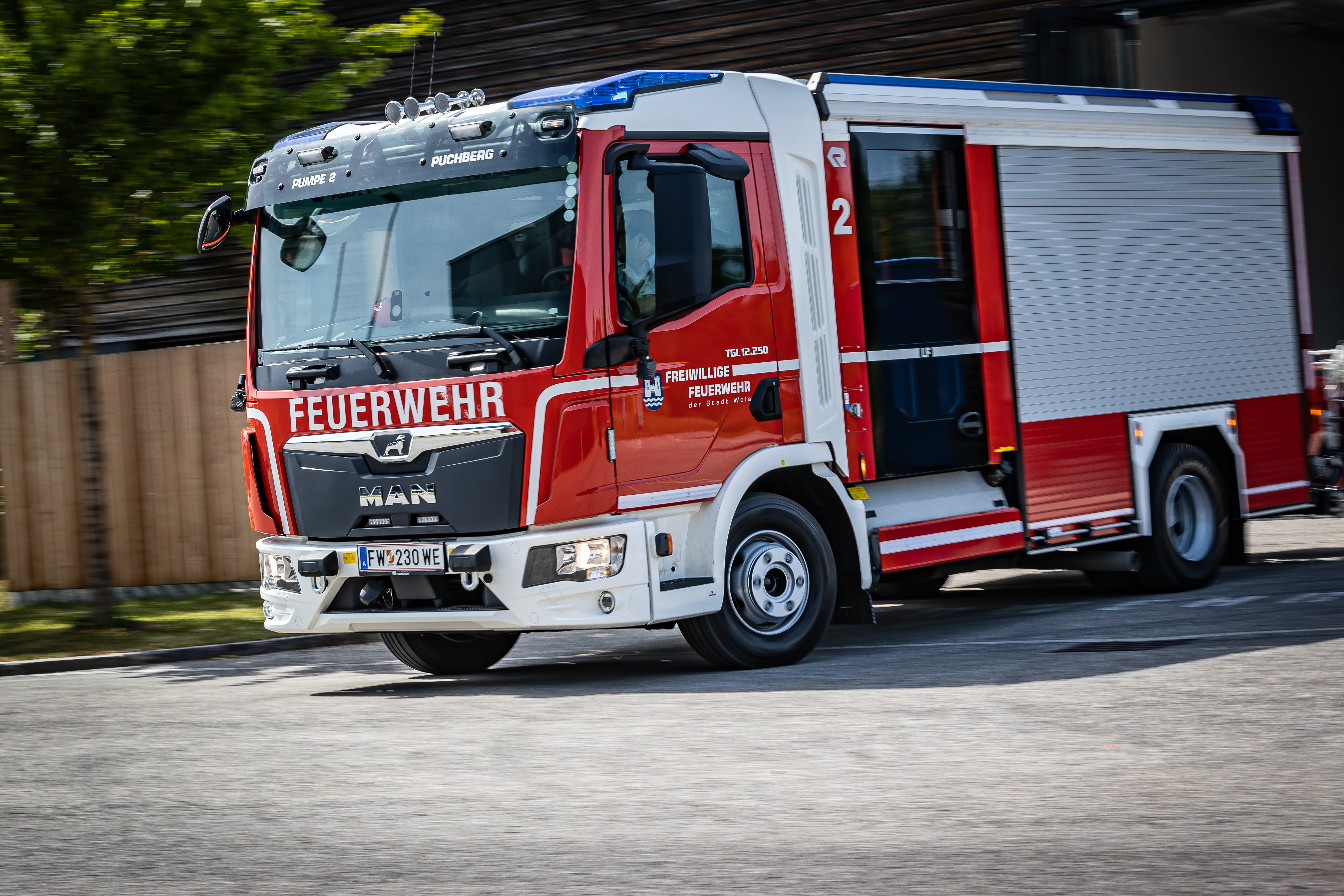 Wels ist die siebtgrößte österreichische Stadt und Wohnort von 66.000 Menschen. Für jene und ein insgesamt 45 km2 großes Gebiet auch jenseits der Stadtgrenzen sorgt in Brandschutz- und Hilfeleistungsbelangen die Welser Feuerwehr mit ihren 144 Frauen und Männern – wohlgemerkt alles Freiwillige. Im Fuhrpark befinden sich insgesamt 30 Fahrzeuge und zudem fünf Boote, denn mit der Traun begrenzt ein Fluss die Stadt im Süden.
