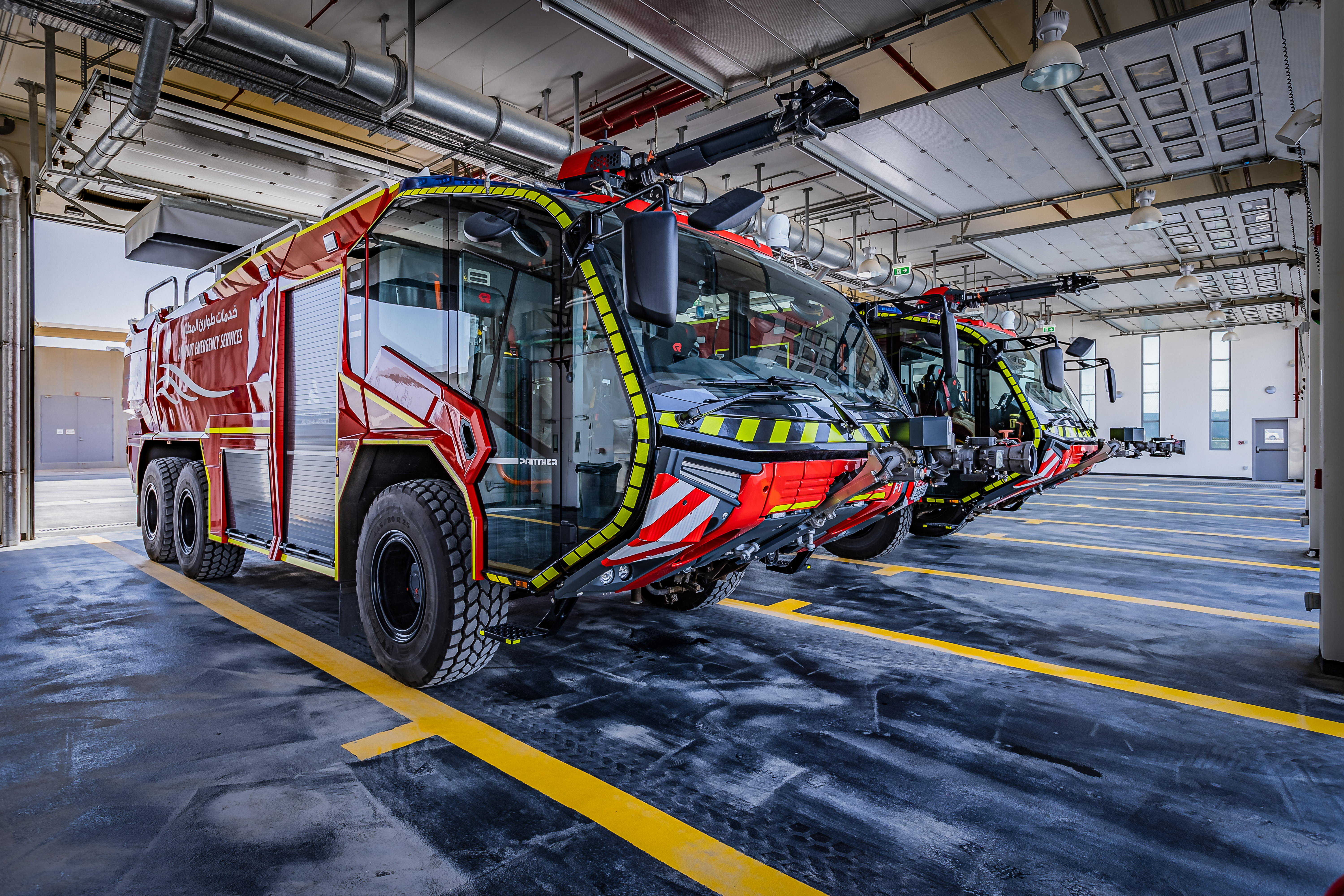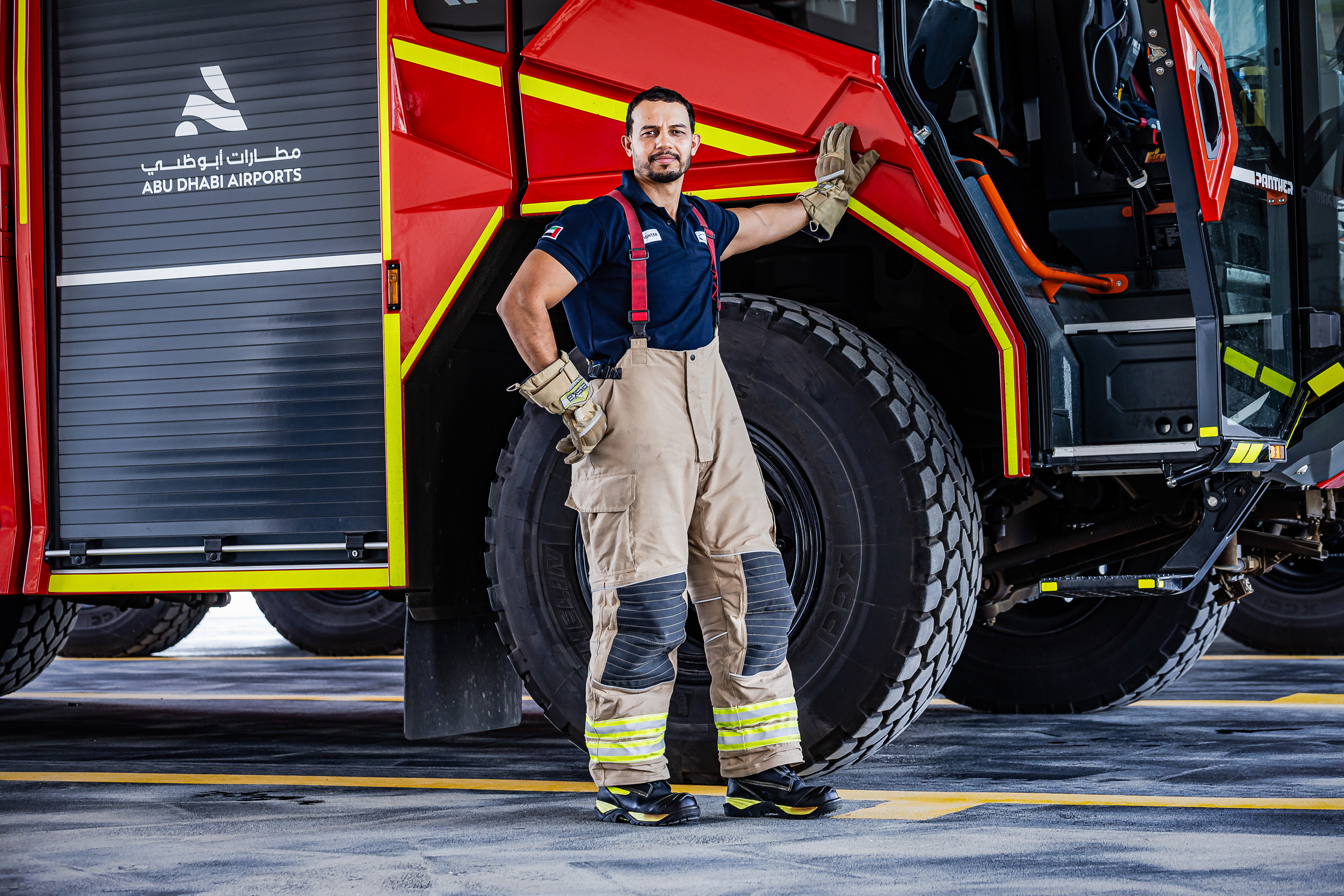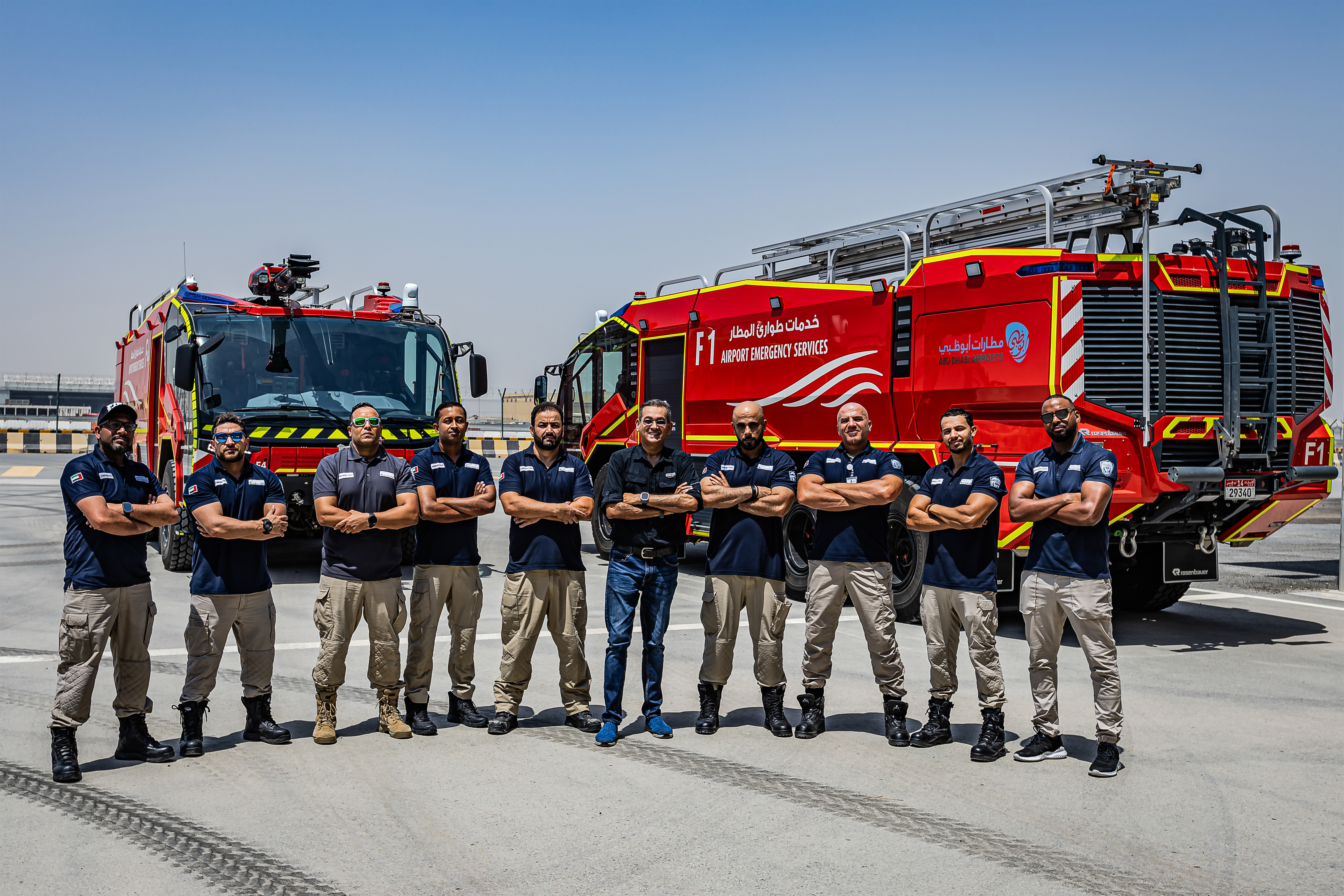 Nach einigen Verzögerungen wurde am Abu Dhabi International Airport im November 2023 das neue, hochmoderne Terminal A eröffnet. Damit erhöht sich die Flughafenkapazität auf mehr als das Doppelte auf 45 Millionen Passagiere pro Jahr. Verständlich also, dass die Verantwortlichen des Flughafens und die knapp 180 Feuerwehrleute dafür gut gewappnet sein wollten. Und mit Rosenbauer haben sie in puncto Equipment offenbar den richtigen Partner dafür gefunden. „In den letzten Jahren vertraut man am Flughafen in Abu Dhabi bei neuen Fahrzeugen sowie bei den Themen Service und Refurbishment bzw. neue Ausrüstung ausschließlich auf Rosenbauer“, sagt Martin und ist dabei sichtlich stolz auf die Leistung des ganzen Unternehmens sowie die gute Zusammenarbeit mit der Feuerwehr in Abu Dhabi.