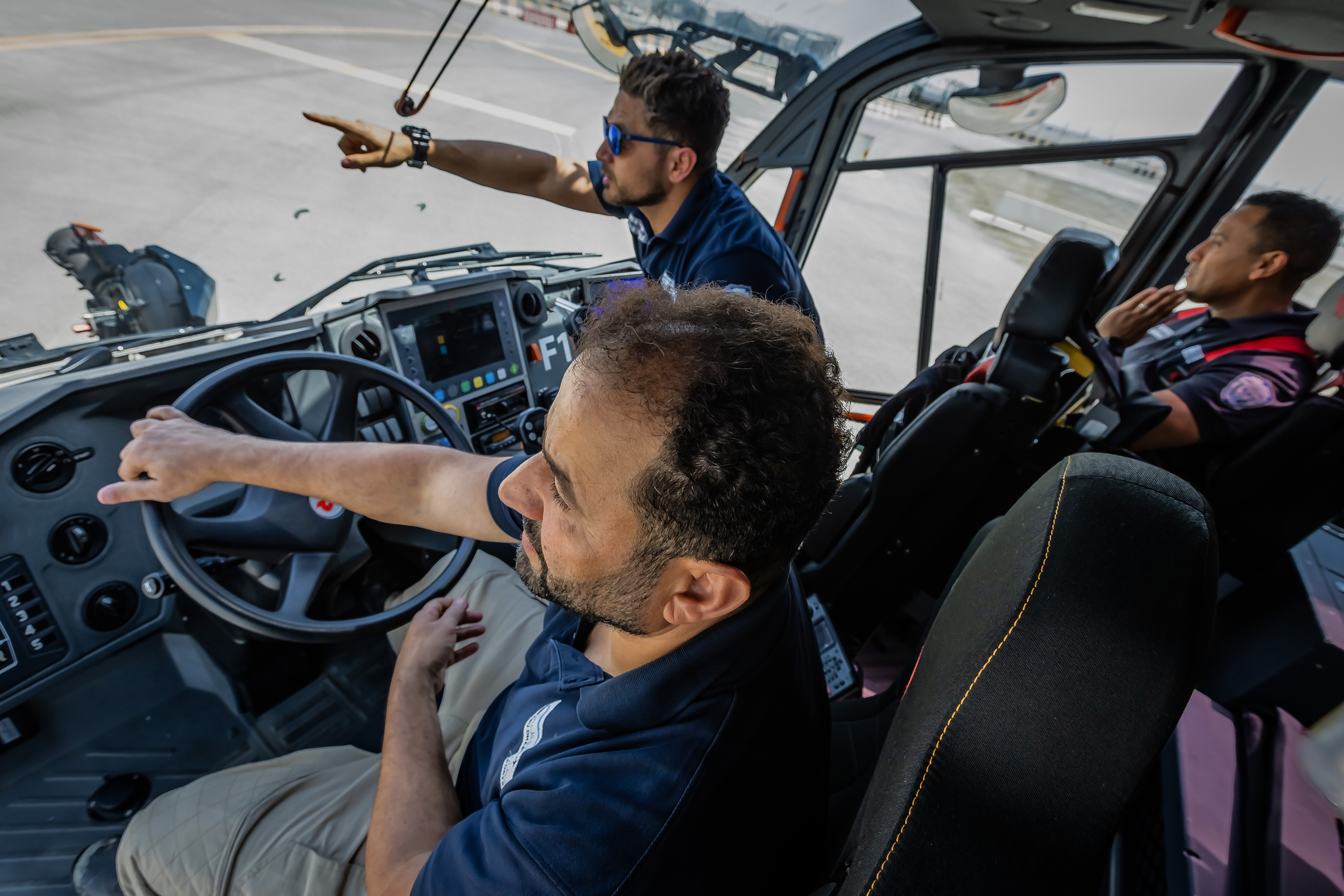 Löschen ist außerdem nicht nur mit Wasser, Schaum und Pulver möglich – selbst eine CO2-Löschanlage ist an Bord. Es wird also deutlich: An den Abu Dhabi Airports überlässt man nichts dem Zufall. Oder in Johns Worten: „Unser oberstes Ziel ist es, nur topmoderne Rettungs- und Brandbekämpfungsausrüstung zu haben.“