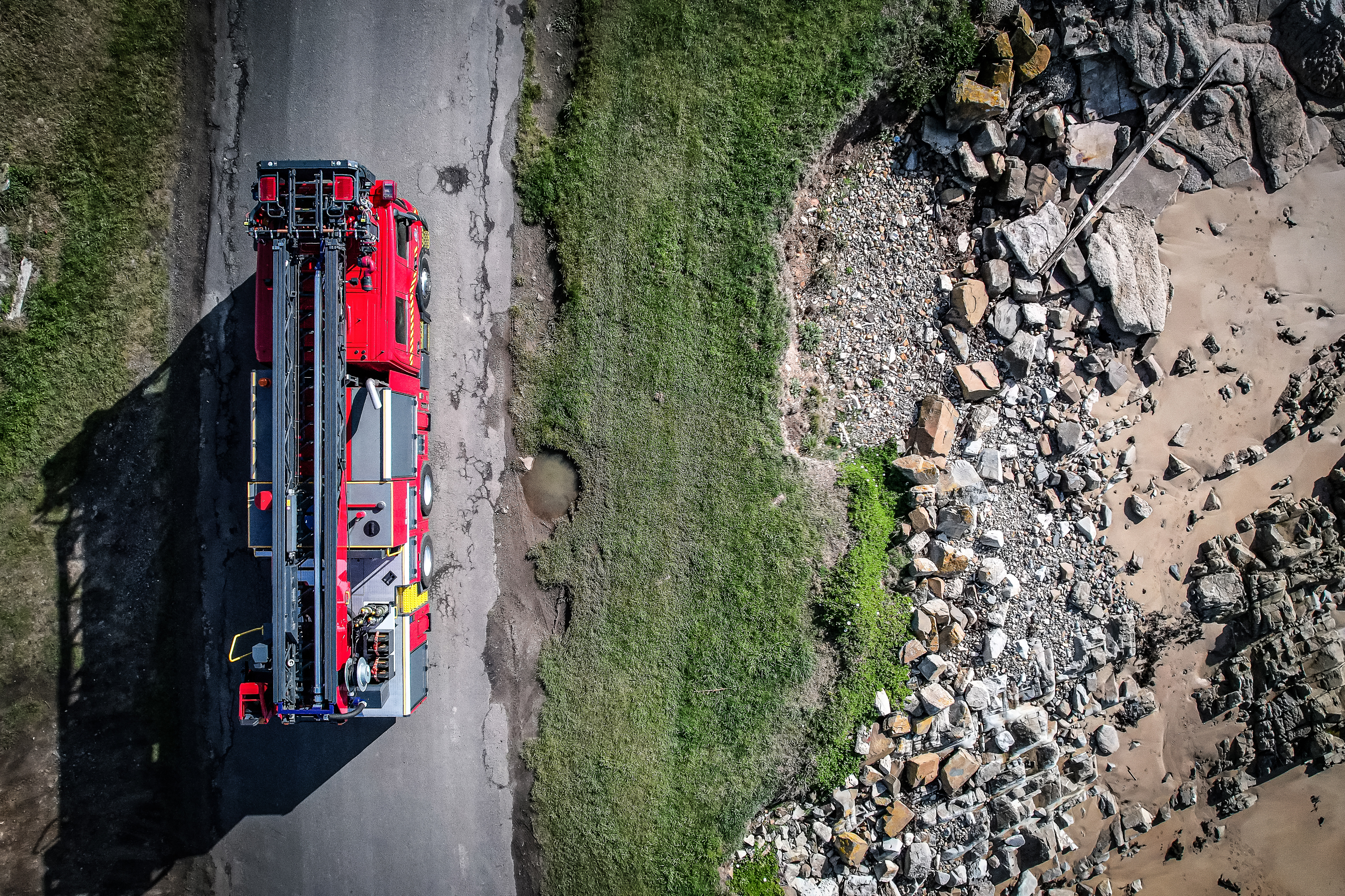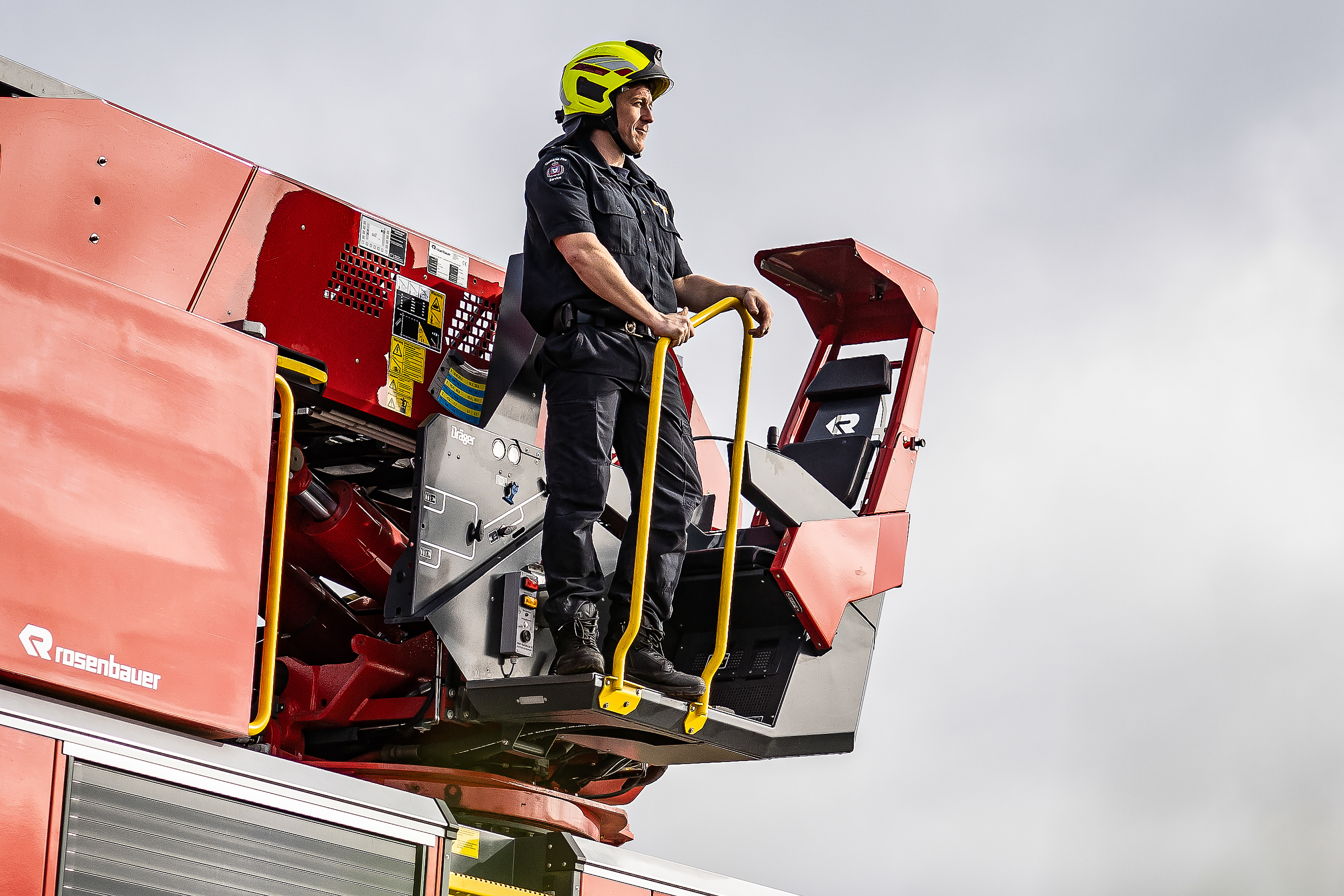 Speaking of action, Steven is fifty-three years old now, but when he joined the fire service thirty-five years ago, at the age of eighteen, he was all about action. “All we wanted to do back then was kick in doors, like in the movies. But today I believe the profession requires a certain maturity. You see things that you can’t easily forget.” His recommendation, therefore, is to gain other experience first and then become a professional firefighter. At the age of thirty, he finally refrained from extreme operations—also with his wife and kids in mind—and took on a management position. As mentioned above, Steve, who in conversation comes off as particularly cool-headed, is responsible for the entire northwestern part of the Tasmanian Fire Service as well as budgeting, negotiations with politicians, and equipment acquisition. Which brings us to our final question: Wouldn’t Burnie also have profited from an aerial apparatus like the ones commonly used in the rest of Australia? Steven’s answer is as simple as it is persuasive: “In Hobart, they use aerials that you need during operations by the river, for example, with negative working heights. That wasn’t part of the criteria for Burnie, which is why we opted for the turntable. It’s simply ready for action much quicker.” After all, what’s true for the rest of the planet is also true for the world’s edge: in an emergency, the top priority is to move up quickly.
