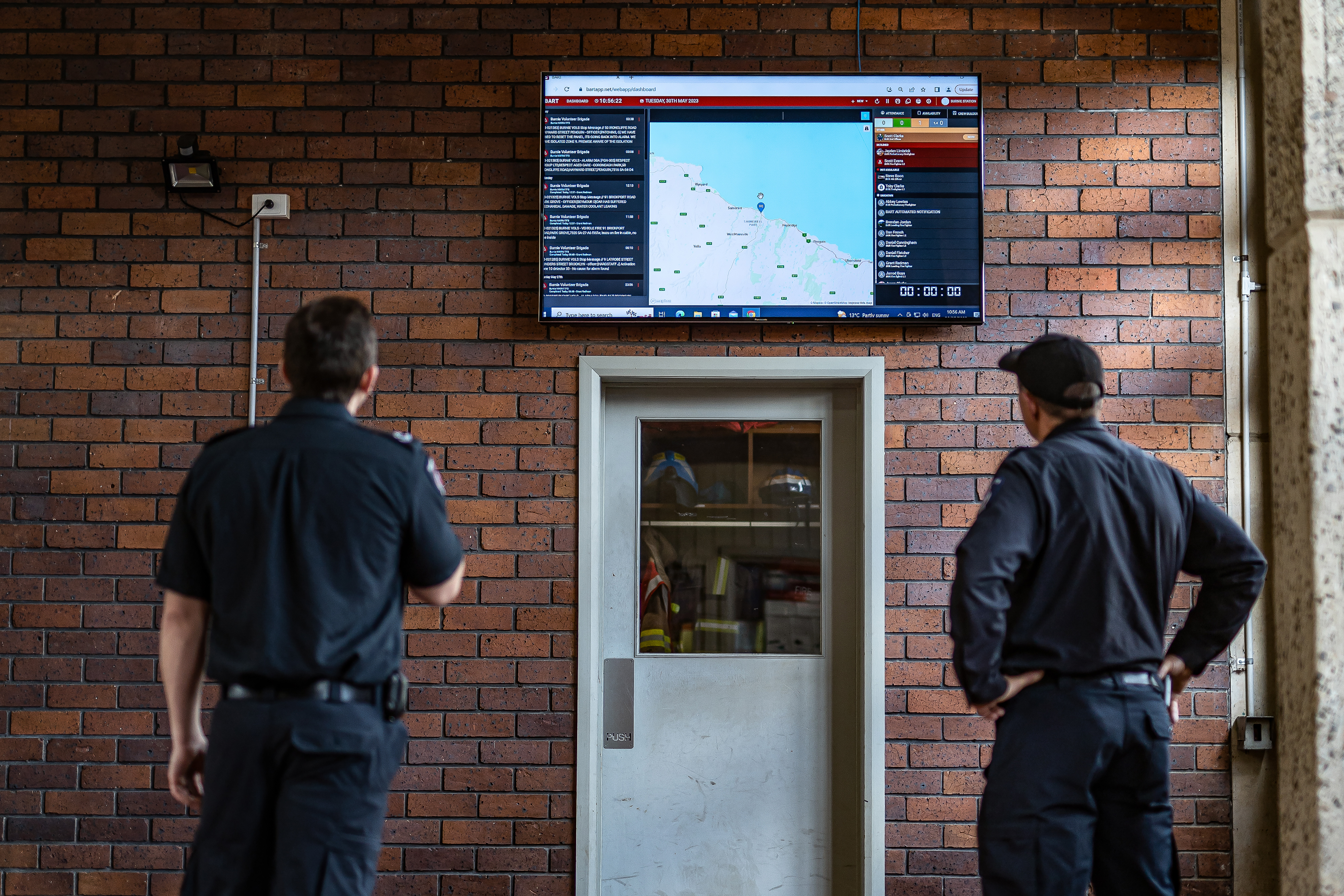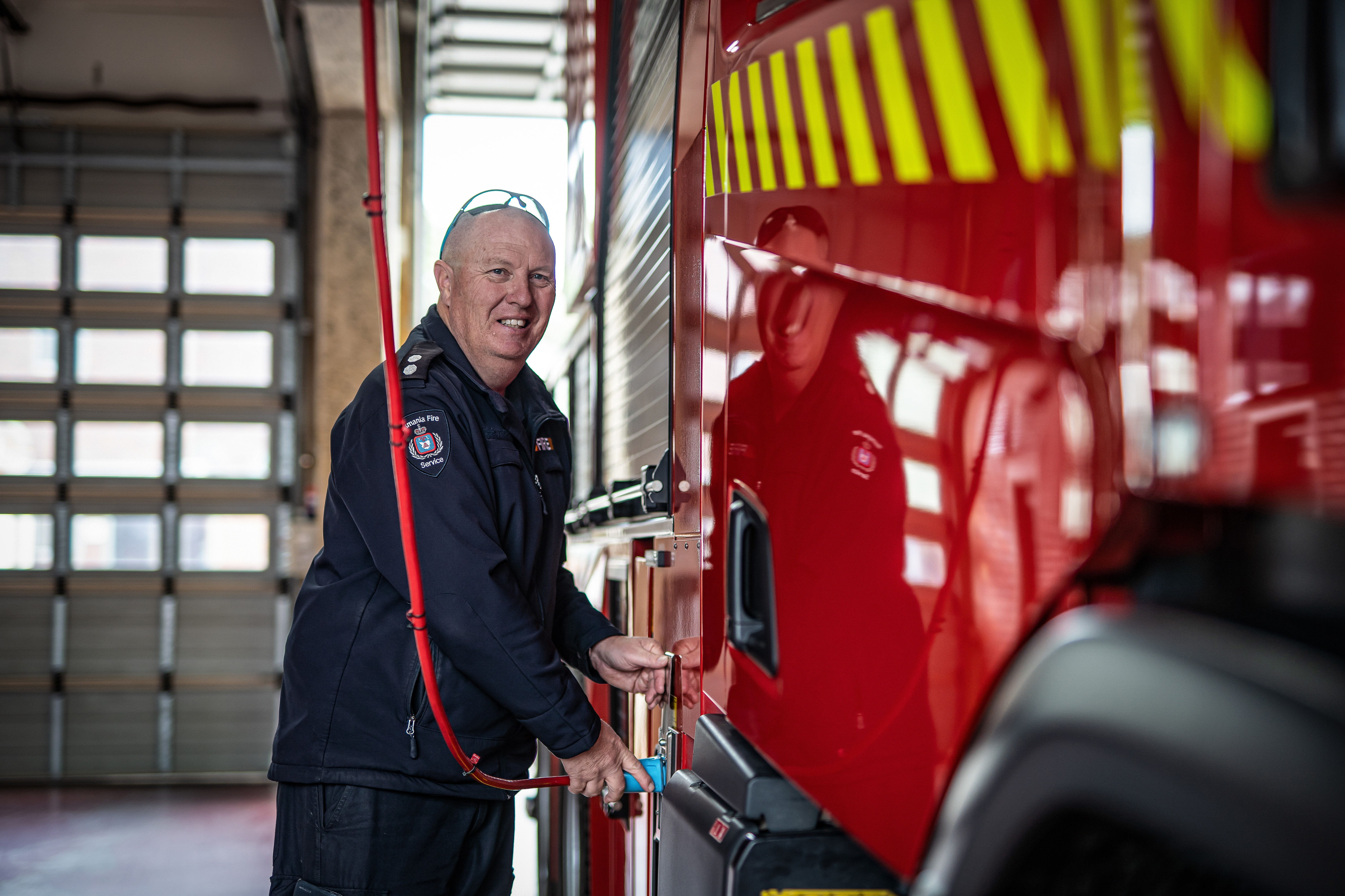 While he talks shop, Steven is sitting in the fire station in Burnie. Located on the north west coast of Tasmania, the city of Burnie has just about 19,000 inhabitants—and yet, it is the island’s fourth largest city. The station is staffed around the clock with a crew of four firefighters. A total of twenty-five professional firefighters work in Burnie, and they get support from volunteers. They are responsible for an area within a twenty-kilometer radius around the city. “Sometimes, however, we’ll drive up to 150 kilometers (93 miles) for special operations.”