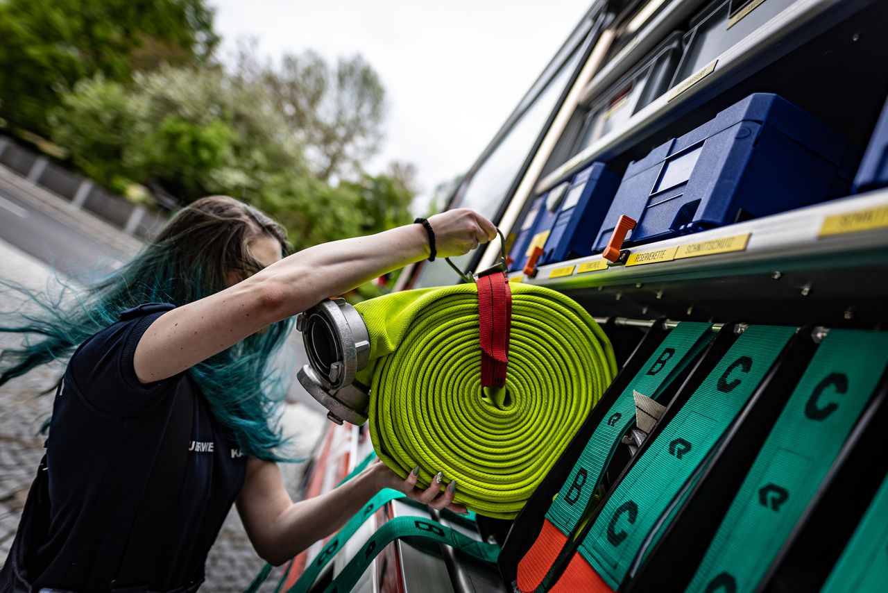 Unlike when Karl started out—“back then we had to assemble one of the smaller fire-fighting vehicles ourselves”—the Wildenau Fire Department today has state-of-the-art equipment. Now, they rely exclusively on Rosenbauer products when it comes to personal protective equipment. And there’s a ten-year-old Rosenbauer rescue pumper, a command vehicle, and a crew truck in the garage. Only recently did the fleet get expanded by a Rosenbauer AT, a high-performance fire apparatus. This one-of-a-kind vehicle is primarily built to ensure water delivery over long distances. With its total weight of fourteen tons, Wildenau’s Rosenbauer AT is perfectly suited to transport 1,000-meter (3 280 feet) type B firehoses. But not only that; the AT is also equipped with a Rosenbauer FOX portable pump. Moreover, the vehicle houses equipment for simple technical assistance as well as power generators.