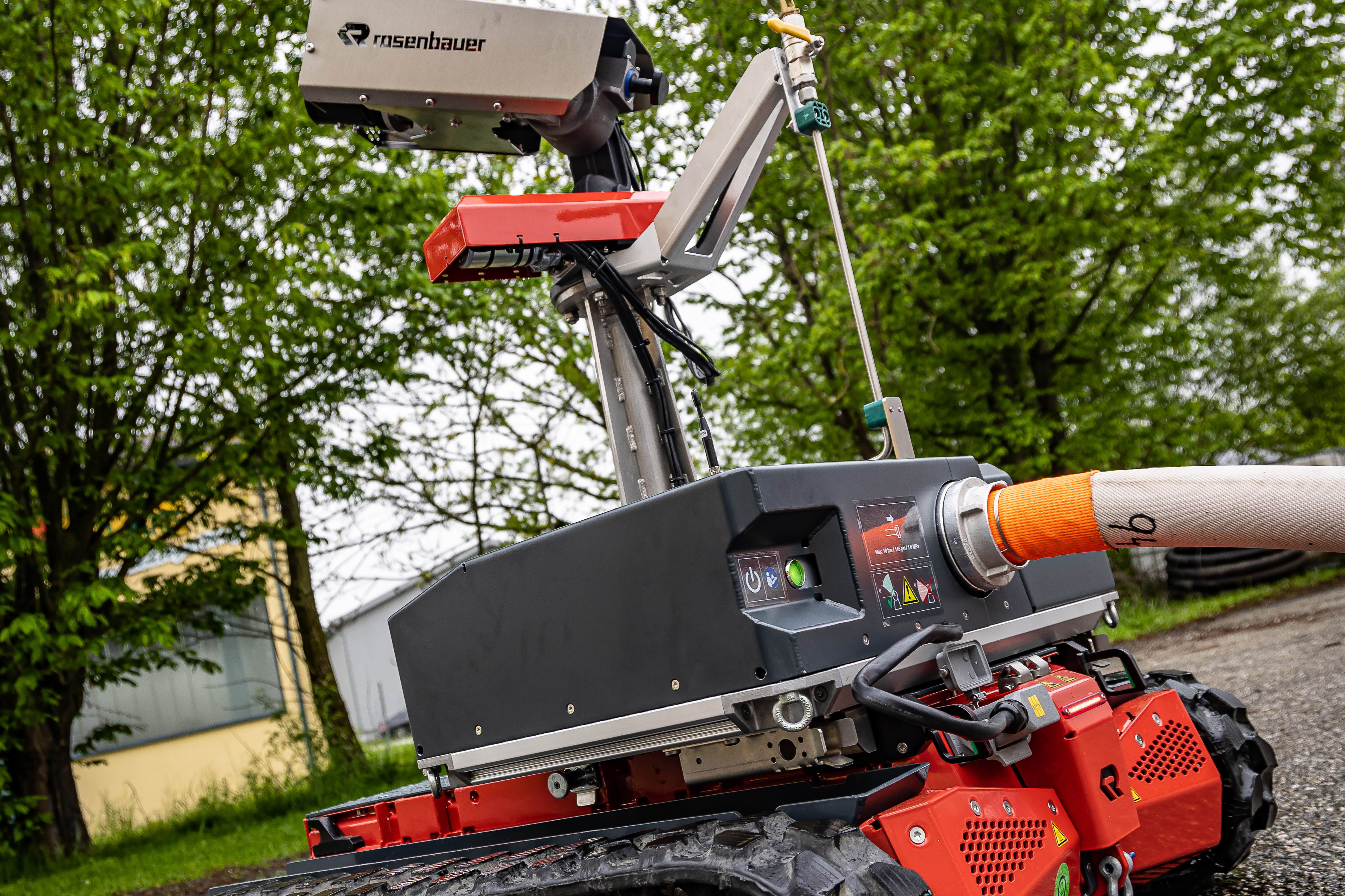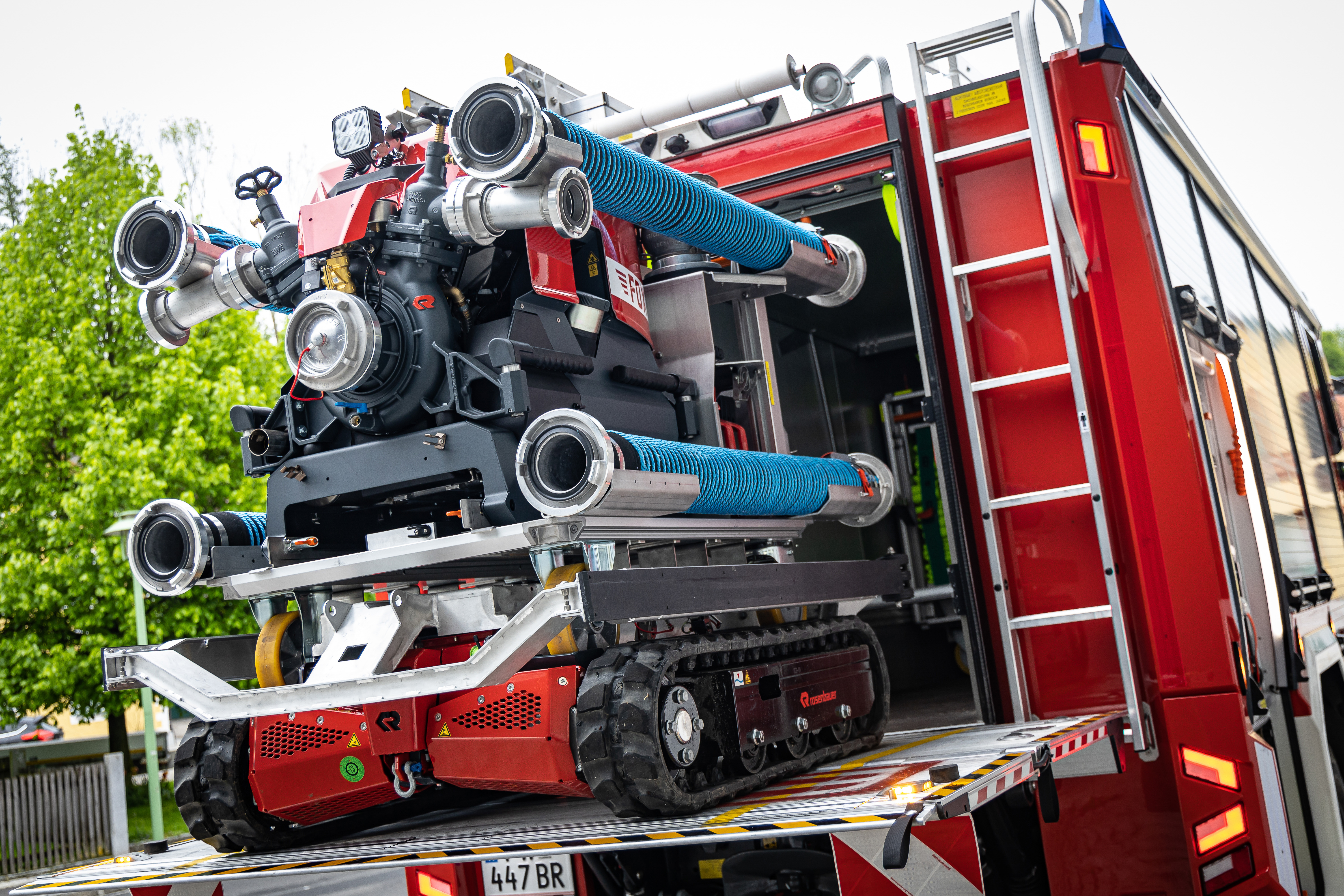 “We didn’t purchase the robot just to transport hoses,” Karl says with a wink, referring to the wide range of options the RTE Robot has to offer. “We wanted to get the utmost from this investment, so we also looked into what else a fire department like Wildenau could do with such a remote-controlled arm.” They subsequently ordered extra modules with fan, turret, and cameras. These make the robot fit for any firefighting operation.